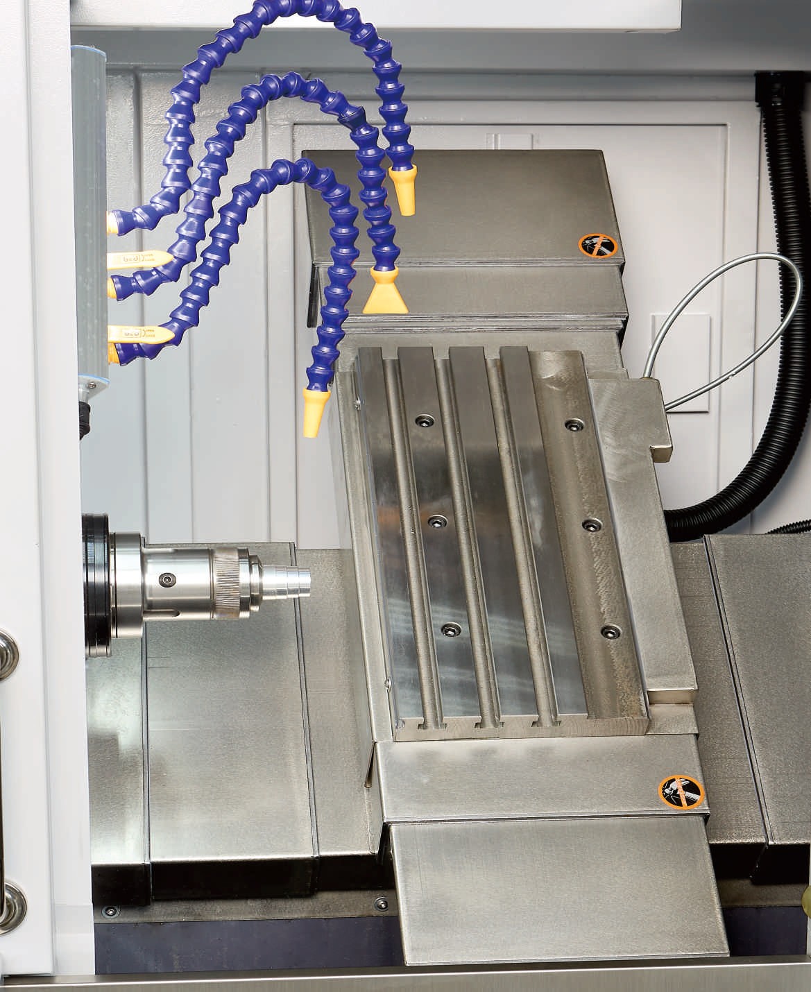 Lampiran pilihan termasuk turet, kepala flycuter, dan kepala kuasa. Ketua kuasa boleh menjadi swiel, alowing forarbitrary swivelangles dari 0 ° to90 °, membolehkan penggilingan bersepadu dan beralih pemesinan.